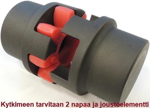 65-75-AG napapuolisko kiinteä valurauta joustavaan sakarakytkimeen (täydelliseen kytkimeen tarvitaan kaksi napaa ja näiden välinen joustoelementti) da = 65 (suurin sallittu koneistettava akselireikä) H1 = 75 De = 135 E = 35 (asennusväli) M = 115 N = 26 H2 = 61 S = 4,5 H = 185 yhden napapuoliskon paino ennen koneistuksia = 6,5kg jatkuva vääntömomentti punaisella 98 Shore elementillä = 950Nm jatkuva vääntömomentti keltaisella 92 Shore elementillä = 625Nm suurin sallittu kierrosluku = 4250r/min a max poikkeama = 0,42 b max poikkeama = 1,2 astetta c max poikkeama = 2,6