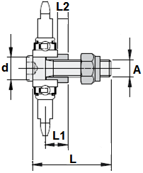 EFT-2 akseli kiristysketjupyörälle 1" sisältää akseli, olakeholkki, lukitusmutteri M16 d = 20 L = 62 L1 = 25 L2 = 16,3 A = M16 vakiokierre