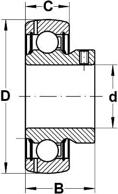 GAY25-NPP-B tai GAY25-XL-NPP-B tai YAT205 varalaakeri laakeriyksikön pesään, ruuvilukitus 25mm akselille, pyöristetty ulkokehän selkä, voitelureijät ulkokehällä lukitusta vastakkaisella reunalla tai molemmilla reunoilla, peltisuojattu ja kumitiivistetty molemmin puolin, merkki INA tai SKF. Vaihtoehtoisia merkintöjä SB205, AY25-NPP-B, GAY25-NPPB, B5, UB205, AS205. Päämitat 25x52x15/27 tai 25x52x27/15 d = 25 D = 52 B = 27 C = 15