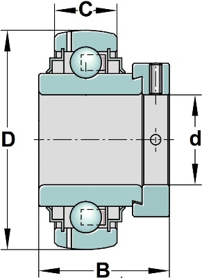 YEL204-2F tai GE20-KRR-B tai UEL204 varalaakeri epäkeskolukitus 20mm akselille, pyöreäselkä, voitelureijät ulkokehällä lukitusrengasta vastakkaisella reunalla, merkki SKF tai INA. Päämitat 20x47x14/43,7 tai 20x47x43,7/14. Vaihtoehtoisia merkintöjä UG204, 36204, EW204. d = 20 D = 47 B = 43,7 C = 14