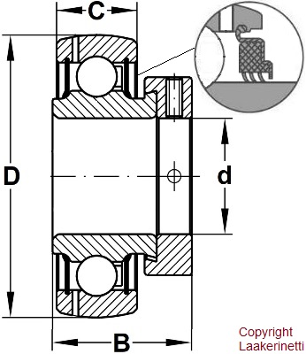 GRAE25-NPP-B tai GRAE25-XL-NPP-B tai YET205 varalaakeri epäkeskolukitus 25mm akselille, pyöreäselkä, voitelureijät ulkokehällä lukitusrengasta vastakkaisella reunalla, vahvistettu 3-huulinen kumitiivistys peltisuojilla, merkki PFI USA. Päämitat 25x52x15/31 tai 25x52x31/15. Joissakin tapauksissa voidaan käyttää seuraavien tilalla RAE25-NPP-B kestovoideltu, GRAE25-NPPB, 16205, KH205, EN205, AEL205, JSA205 d = 25 D = 52 B = 31 C = 15