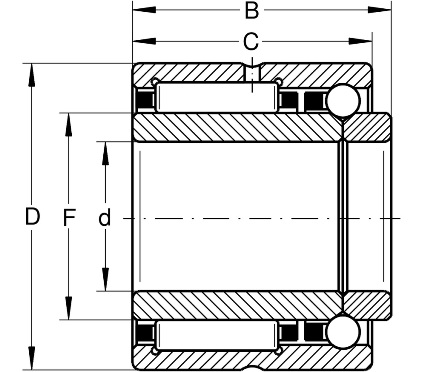 NKIB5903 neulaholkki-painekuulalaakeri yhdistelmä päämitat 17x30x20 neulalaakeriosuudessa teräspidin, kuulalaakeriosuudessa polyamidi pidin, jotka kaikki pysyvät ulkokehän mukana. Sisältää erilliset sisäholkki neulalaakerille ja päätyrengas painekuulalaakerille, merkki NKE Itavalta. NKIB 5903 neulalaakeri painelaakeri yhdistelmä, neulalaakeriholkin ja aksiaali painekuulalaakerin yhdistelmä, neulalaakerin ja päittäislaakerin yhdistelmä. d = 17 D = 30 B = 20 C = 18 F = 22 säteiskuormitus dynaaminen max = 12400N aksiaalikuormitus dynaaminen max = 3150N RPM max = 20000 öljyvoideltuna, rasvavoideltuna vähemmän