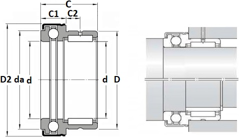NKX10Z neulaholkki-painekuulalaakeri yhdistelmä 10x19x23 suojattu olakkeellinen malli, neulat ja kuulat teräspitimellä. NKX 10 Z neulalaakeri painelaakeri yhdistelmä massiiviulkokehällä, neulalaakeriholkin ja aksiaali painekuulalaakerin yhdistelmä, neulalaakerin ja päittäislaakerin yhdistelmä. Asennus suoraan akselin pintaan tai esim. laakeriholkkia IR6x10x10 tai IR6x10x12 sisäkehänä käyttäen. d = 10 D = 19 C = 23 C1 = 9 C2 = 6,5 da = 19,7 säteiskuormitus max = 6000N aksiaalikuormitus max = 9500N RPM max = 12000 öljyvoideltuna, rasvavoideltuna vähemmän