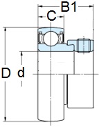 RA100RRB5 varalaakeri epäkeskolukitus 1" tuuman eli 25,4mm akselille, pyöristetty ulkokehän selkä, kestovoideltu ei voitelureikiä ulkokehällä, kumitiivistetty ja peltisuojattu molemmin puolin, merkki Timken, Fafnir tai SKF. Päämitat 25,4x52x15/31 tai 25,4x52x31/15 tuumissa 1"x2,047"x0,591" / 1,219" tai 1"x2 3/64"x0,591" / 1 7/32". Käytetään mm. Arctic Cat moottorikelkassa. d = 25,4 eli 1" D = 52 eli 2,047" tai 2 3/64" B1 = 31 eli 1,219" tai 1 7/32" C = 15 eli 0,591"