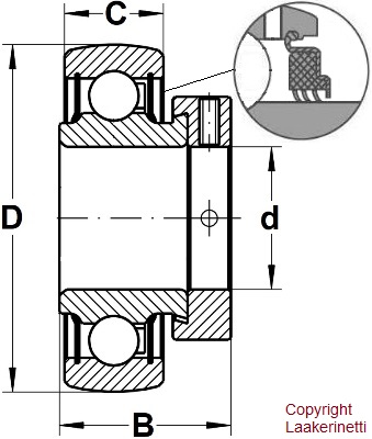 RAE25-NPP-B varalaakeri epäkeskolukitus 25mm akselille, pyöreäselkä, kestovoideltu, erikoisvahvistettu 3-huulinen hankaava kumitiivistys, ulkopinnat lisäksi peltisuojattu, merkki PFI USA. Päämitat 25x52x15/31 tai 25x52x31/15. Voidaan joissakin tapauksissa käyttää myös voideltavan mallin GRAE25-NPP-B tilalla. d = 25 D = 52 B = 31 C = 15